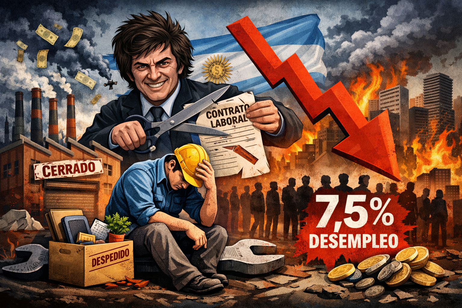 Entre noviembre de 2023 y diciembre de 2025 desaparecieron 22.608 empleadores y 297.716 trabajadores/as registrados/as. El último dato oficial del INDEC sumó otra alarma: la desocupación trepó al 7,5%, con 1,093 millones de personas sin trabajo en los 31 aglomerados urbanos.
