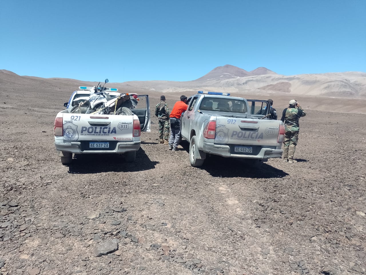 En este sentido, desde la Policía informaron que anoche, alrededor de la medianoche, se recibió una alerta de emergencia de cuatro personas, de la provincia de Tucumán, que se habían perdido en el Corona del Inca mientras andaban en motos. Se activó el protocolo de búsqueda desde la Capital, enviando un equipo de rescate de CAPE que llegó a Vinchina a las 6 de la mañana y partió hacia el Corona del Inca a las 8. A las 17 horas, tuvieron contacto con las personas extraviadas, confirmando que estaban bien de salud y en proceso de regreso. Además, se recibió apoyo de Gendarmería de Chilecito con una moto y un Unimog para ayudar en la búsqueda.